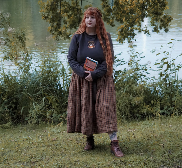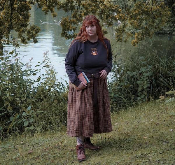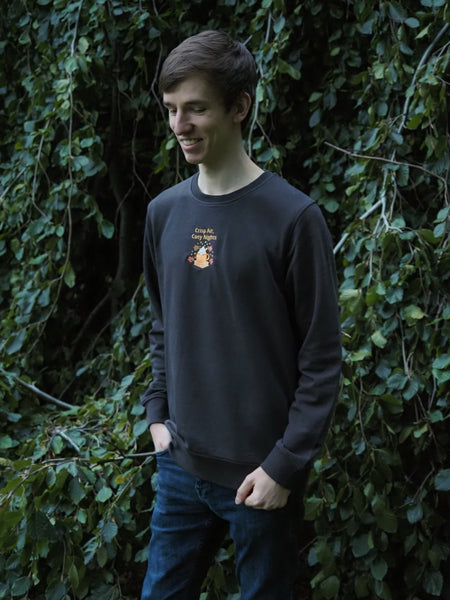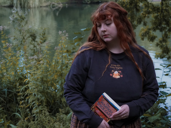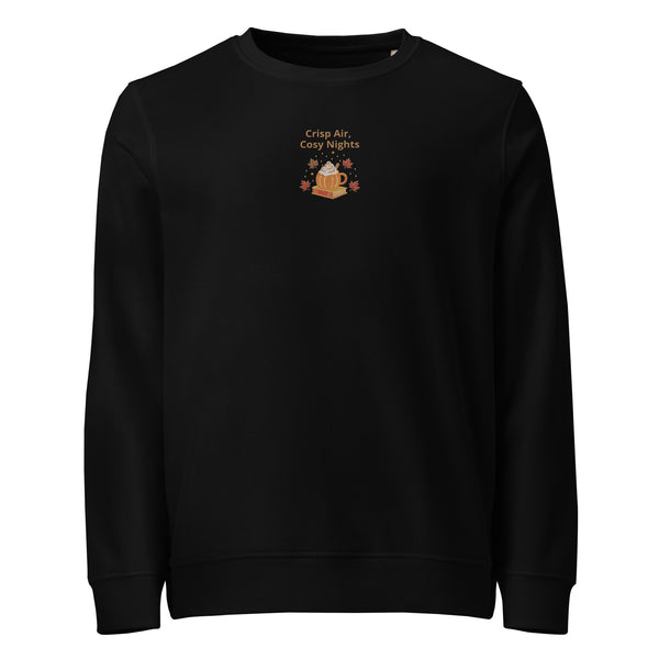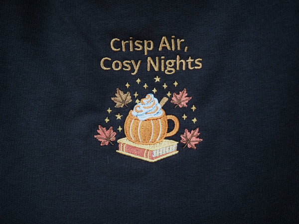 Wrap yourself in the quiet magic of crisp autumn nights with this lightweight sweater, a soft companion in a deep, smoky brown that almost whispers grey. Embroidered with a steaming pumpkin spice mug resting on a stack of books, scattered autumn leaves, and the gentle words “Crisp air, cosy night,” it evokes the perfect evening of reading by the window while the world turns golden outside. Without fleece, it’s light and breathable; ideal for layering on chilly walks or curling up under a blanket with warm cider in hand.
