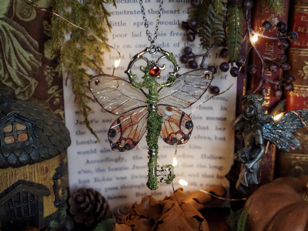 This one-of-a-kind flying key is meticulously handcrafted with enchanting details, featuring moss and magical accessory like handmade mushrooms, citrin or metallic ornaments. Inspired by the mystical allure of a secret garden, it is tailored for fairy lovers who appreciate the magic of nature.