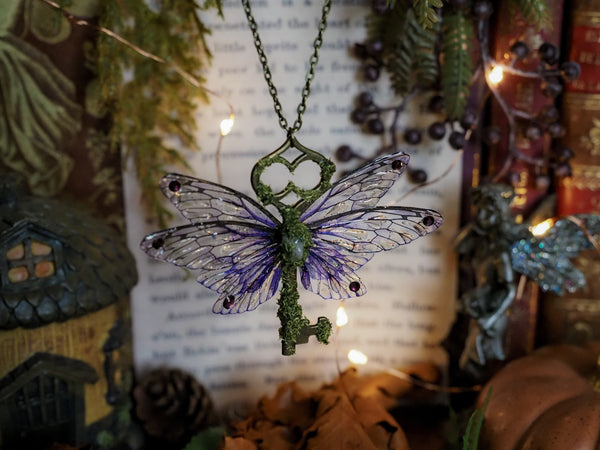 This one-of-a-kind flying key is meticulously handcrafted with enchanting details, featuring moss and magical accessory like handmade mushrooms, citrin or metallic ornaments. Inspired by the mystical allure of a secret garden, it is tailored for fairy lovers who appreciate the magic of nature.