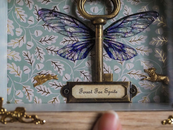 This exquisite handmade one of a kind piece features an antique look that adds a touch of vintage elegance to any space. The frame is adorned with a delicate winged key, symbolizing the fairies' gentle touch, and is set against a backdrop which shows a magical scenery with golden elements. Small golden ornaments adding a shimmer to this extraordinary piece that complements its ethereal theme. Perfect for those who cherish fantasy and timeless beauty, this frame is a magical addition to your decor.